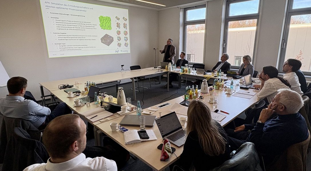 Neben der fachlichen Diskussion wurde auch das weitere Vorgehen abgestimmt. In den kommenden Monaten stehen insbesondere die Vorbereitung und Durchführung von Schmiedeversuchen sowie die Auslegung industrienaher Demonstratorbauteile im Fokus, um die erarbeiteten Erkenntnisse unter praxisnahen Bedingungen zu validieren. Ergänzt wurde das Sitzungsprogramm durch organisatorische Punkte und die Terminplanung für die nächste Sitzung.
