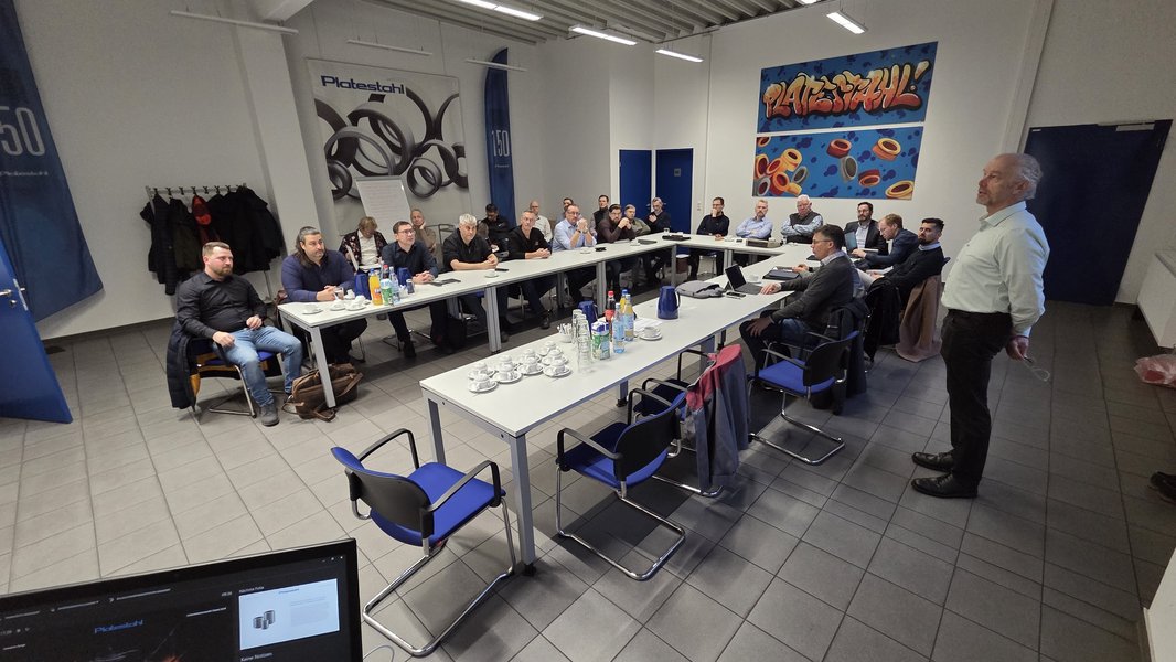 Der Arbeitskreis Freiformschmieden und Ringwalzwerke traf sich am 26. November 2025 bei der Platestahl Umformtechnik GmbH in Lüdenscheid. Nach der Begrüßung durch Dr. Achim Kluge und Arbeitskreisleiter Dr. Sebastian Trute sowie den obligatorischen kartellrechtlichen Hinweisen stellte Dr. Kluge das gastgebende Unternehmen vor. Daran schloss sich eine Betriebsbesichtigung in zwei Gruppen an, die wertvolle Einblicke in die Produktionsabläufe ermöglichte.