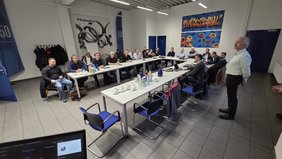 Im anschließenden Vortragsprogramm präsentierte Jürgen Krebs (BEWA solutions GmbH) die „3D-Orbital-Warmvermessung“ als präzise Methode zur Messung von Werkstücken im warmen -aber auch kalten- Zustand. Direkt danach beleuchtete Marcel Biebl (GWI Essen e. V.) das Potenzial von Ammoniak als Energieträger und dessen Bedeutung für zukünftige industrielle Anwendungen. Einige Rückfragen machten deutlich, dass weitere Forschung erforderlich ist.